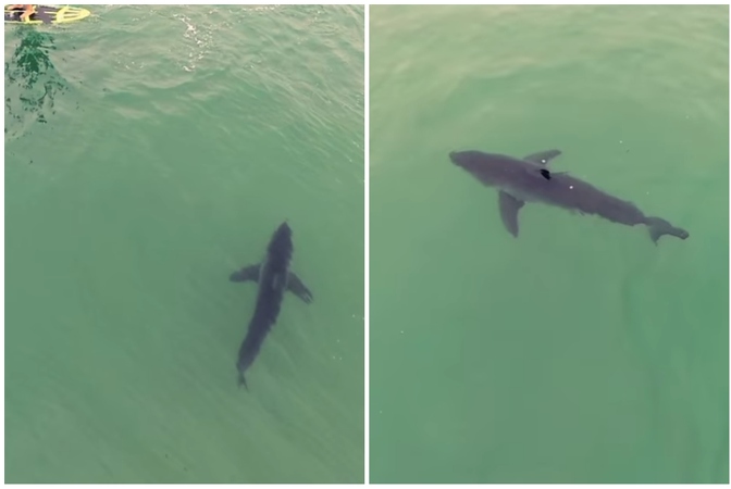 Dronom snimili situaciju koja će prestraviti i najhrabrije: Velike bijele psine plivale točno ispod čovjeka